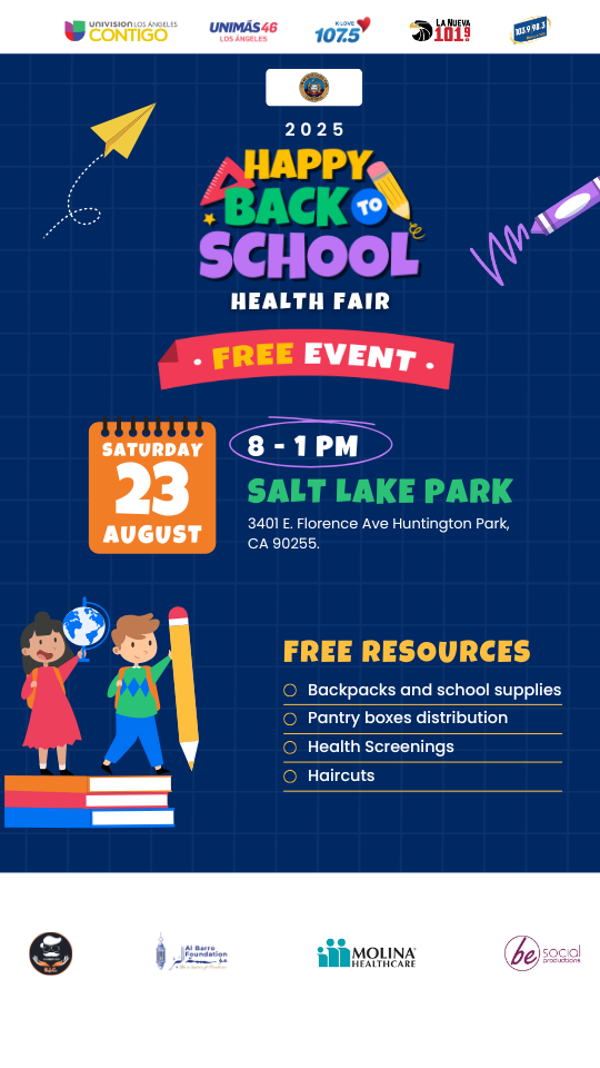 August 23, 8:00am – 1:00pm: Salt Lake Park, 3401 E Florence Ave., Huntington Park, CA 90255