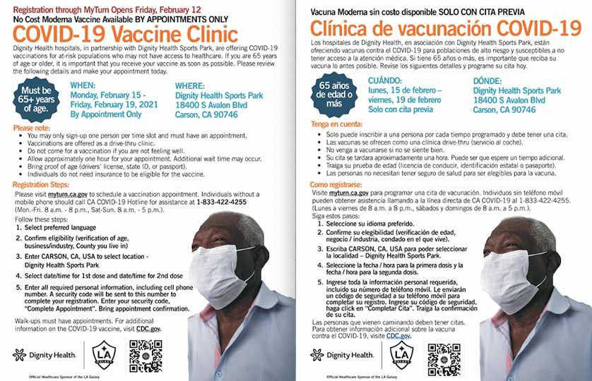 Dignity Health Sports Park Vaccination Clinic for Those 65+ Years of Age